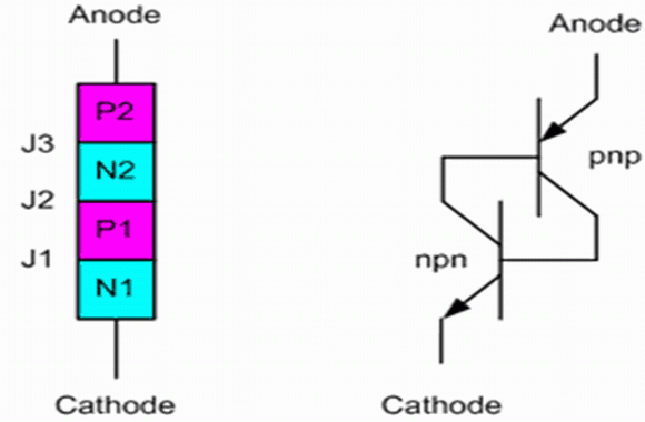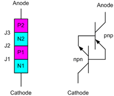 圖1 晶閘管物理結構和電路
