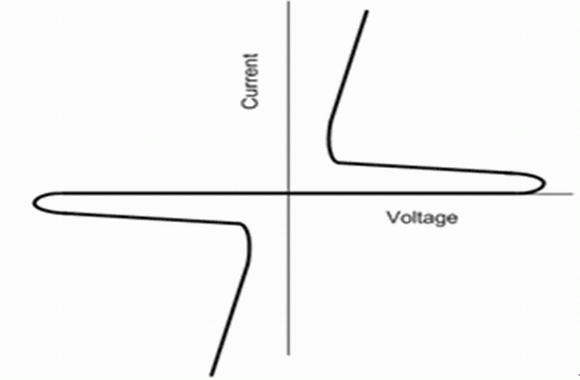 圖2 晶閘管正向導通的電流-電壓(I-V)曲線