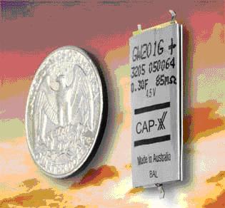 CAP-XX公司專門針對(duì)便攜式市場(chǎng)推出了GS/GW系列單節(jié)和雙節(jié)超級(jí)電容器(圖5)。這些電容提供了電能有限的電池的替代品,壽命非常長,單節(jié)配置電壓為2.3V,串聯(lián)連接的雙節(jié)電容器電壓可達(dá)4.5V。