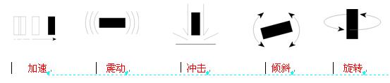 加速、震動(dòng)、沖擊、傾斜和旋轉(zhuǎn)——除了旋轉(zhuǎn)外,其它四種運(yùn)動(dòng)實(shí)事上都是加速度在不同時(shí)間段的表現(xiàn)。然而,我們?nèi)祟愂菬o(wú)法靠直覺來(lái)做出運(yùn)動(dòng)狀態(tài)的判斷,例如震動(dòng)是加速還是減速。分別地考慮每一種模式可以幫助我們想出更多可能的應(yīng)用。