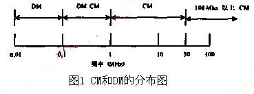 EMI信號包括共模干擾信號CM和差模干擾信號DM,CM和DM分布如圖1所示。它可用來指導(dǎo)如何確定EMI濾波器網(wǎng)絡(luò)結(jié)構(gòu)和參數(shù)。