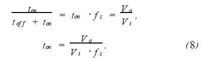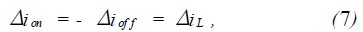 Δion為導通狀態紋波電流;ton為導通時間;Δioff為關斷狀態紋波電流;toff為關斷時間。