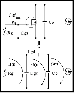 其中:Vg (t) =門極電壓;a = 漏極電壓的擺率;Rg = 包括門極驅動器的總門極電阻;Cgs = 門極與源極之間的電容;Cgd = 門極與漏極之間的電容;顯然,Cgd越大,則耦合電壓越大。