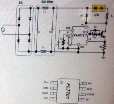 - 非隔離PFC降壓無電解電容LED驅動器FL7701