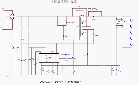 針對于無電解電容方案的LED驅動器的開發,上海得倍電子也推出了一款D7160 是無電解電容的LED驅動IC。它無需電解電容,節省體積,可使印刷電路板面積縮小至原來的40%,提高整個LED燈具壽命,壽命可達10萬小時以上,綠色環保,白光LED能耗是普通節能燈的1/4,內置抖頻減小EMI,內置各種保護(過溫、欠壓閉鎖、過壓、過流),兼顧功率因數和輸出紋波,內部具有一個30K--130K的壓控振蕩器,使得線路更加穩定,效率更高并可以廣泛應用于照明LED、射燈和日光燈之中。