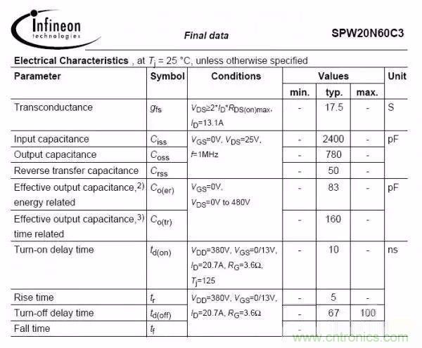 參照以上兩圖,是不同型號的MOS管,對比下輸入結電容和輸出結電容,2400PF與800PF;780PF與2200PF;一看就知道第一個規格是快管,第二個是慢管,這時候決定開關速度還要與驅動電阻匹配;常規情況驅動電阻在10R-150R比較多,選取驅動電阻與結電容有關,針對快板驅動電阻可適當增大,慢管驅動電阻可適當減小; 對于二極管,有肖特基二極管,快回復二極管,普通二極管,還有一種用的比較少的SIC二極管,開關速度SIC二極管幾乎為零,等于是沒有反向恢復,開關輻射最小,并且損耗也最小,唯一的缺點就是價格昂貴,故很少用;其次就是肖特基二極管,正向壓降低,反向恢復時間短,依次是快回復和普通二極管;需要在損耗和EMC之間折中;一般可采取改吸收以及套磁珠等措施整改EMC;