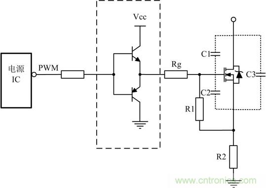 開關管開通瞬時,驅動電路應能提供足夠大的充電電流使MOSFET柵源極間電壓迅速上升到所需值,保證開關管能快速開通且不存在上升沿的高頻振蕩。