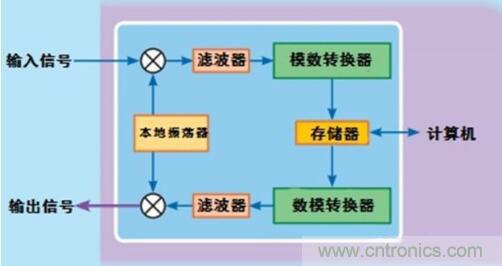 數(shù)字射頻存儲(chǔ)器的關(guān)鍵器件是模數(shù)轉(zhuǎn)換器。模數(shù)轉(zhuǎn)換器可以以每赫茲2.5個(gè)采樣率進(jìn)行頻帶數(shù)字化,它可以輸出 I & Q(同步和正交)數(shù)字信號(hào)。這樣就可以掌握數(shù)字化信號(hào)的相位。