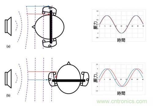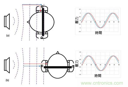 圖4:靠近噪聲進入耳朵的位置放置話筒(a) 0度朝向的噪聲(b) 90度朝向的噪聲