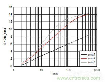 圖1:AMC1304L05 —— 有效位數和過采樣率