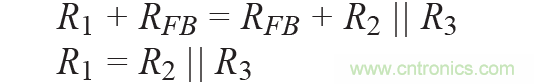 所有電阻(R1至R3)應具有相同的電阻溫度系數(shù)(TCR),但不一定要與DAC內(nèi)部電阻的TCR相同。電阻R1用于根據(jù)R2和R3及以下關(guān)系調(diào)整DAC內(nèi)部電阻(RFB):