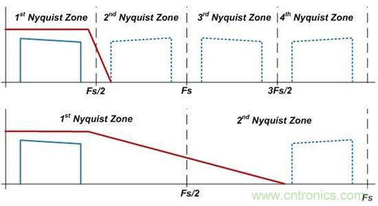 圖1:濾波器對奈奎斯特速率采樣與過采樣的影響