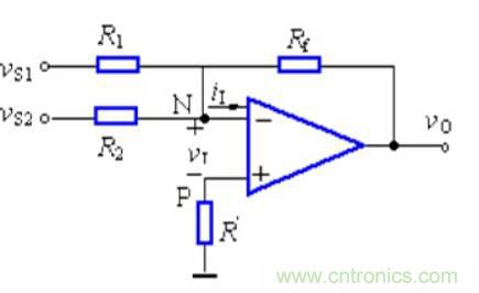 圖1-2.運放實現的加法器