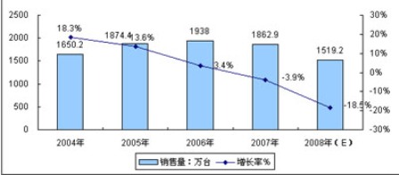 - 預計2008年銷售量將同比下降18.5%,銷售收入同比下降20.8%