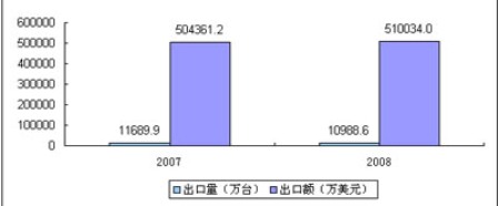 近年以來,全球DVD播放機市場呈現(xiàn)相對飽和、增長放緩。席卷全球的金融風暴,高額的核心技術專利費,人民幣的升值,原材料價格持續(xù)上漲和勞動力價格的上升等因素使國產(chǎn)DVD低成本的出口優(yōu)勢逐步減弱,因此,2008年1-10月DVD播放機出口市場呈現(xiàn)“量降價漲”的趨勢,2008年1-10月出口為10988.59萬臺,同比下降6%,出口額為510034萬美元,同比增長1.1%。出口仍以OEM加工為主。