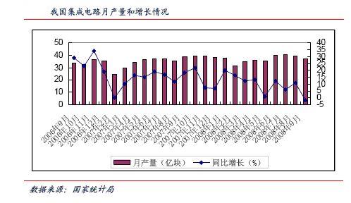 圖1:我國集成電路月產(chǎn)量及增長情況。