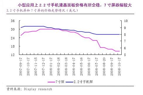 圖3:小型應(yīng)用上2.2寸手機液晶面板價格有所企穩(wěn),7寸屏跌幅較大。