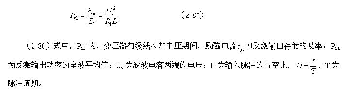 (2-79)式中,Pra為反激輸出功率的全波平均值,Uc為濾波電容兩端的電壓,R1為負載電阻。