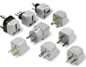可以預見,在相當長的時間內,交流電插頭/座還會維持現狀。在不能統一標準而又要解決互換使用的情況下,轉接適配器(圖2.3)成為目前行之有效的辦法。實現將某種插座轉換成能與多種插頭匹配的樣式(圖2.4)。適配器自身插頭改進后,適用范圍可更廣。