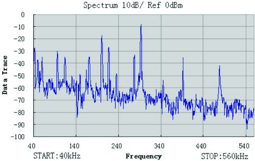 圖3國內農村中壓線路噪聲特性曲線(40k-560kHz)