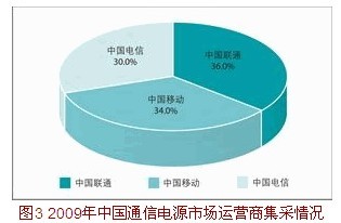2009年,中國移動及中國電信兩家運營商對通信電源產品進行了公開招標集采,中國聯(lián)通則沿用2008年的集采份額。根據(jù)各運營商的集采數(shù)據(jù)顯示: 在中國移動的集采中, 艾默生以28%的份額排名第一;中國電信的集采中,中興通訊位居第一,占有31%的集采份額;中國聯(lián)通的集采數(shù)據(jù)顯示,中興通訊達40%的份額,以絕對優(yōu)勢位列中國聯(lián)通集采第一。