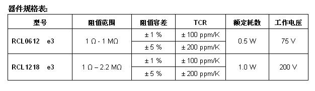 RCL0612 e3和RCL1218 e3通過了AEC-Q200 Rev. C認證,其寬大的端頭實現了高功率耗散。在密集堆疊的PCB板上,器件的小尺寸可節約空間,實現更多的溫度循環,從而提高汽車電子系統和其他通用電子系統的可靠性。