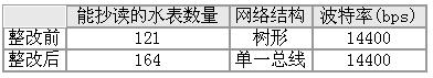 (1)網絡布局不合理。這時的結構近似樹形,但RS-485總線不支持環形或星形網絡。同時,由于總線的不同區段采用了不同電纜,某一段總線上有過多收發器緊靠在一起安裝,或者是有過長的分支線引出總線,都會出現阻抗不連續點。所以應該提供一條單一連續的信號通道作為總線。根據這一原則對網絡進行了大的整改,采用單一總線將各個節點串接起來,同時進行接地處理,如圖2所示。再次集抄的結果比先前要好,但還是有部分水表抄讀不到或數據不穩定,未達到預期效果。表1是整改前后水表抄讀的情況。