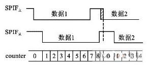 通過對(duì)從器件的波形分析發(fā)現(xiàn),counter=8后的第一個(gè)時(shí)鐘周期,數(shù)據(jù)最后一位的傳輸已經(jīng)完成。在數(shù)據(jù)已經(jīng)收/發(fā)完畢的情況下,counter=8狀態(tài)的長(zhǎng)短對(duì)數(shù)據(jù)的正確性沒有影響,因此可以縮短counter=8的狀態(tài),以避免前一個(gè)SPIF和后一個(gè)SPIF相重疊。這樣,從硬件上避免了這一階段的溢出錯(cuò)誤。