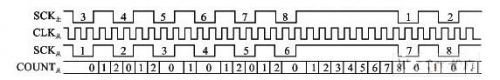 但由于主從時(shí)鐘之間是異步的,并且經(jīng)過了取整,所以正常時(shí)候SCK=1時(shí)的時(shí)鐘周期計(jì)數(shù)值COUNT應(yīng)滿足: