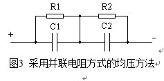 最簡單的電壓均衡措施是在每個(gè)超級電容器兩端并接電阻,如圖3。