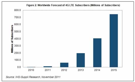 根據IHS iSuppli公司的智能手機與融合設備市場研究報告顯示,在移動網絡運營商的大力支持下,下一代4G無線標準——長期演進(LTE)在今年以及未來幾年將取得驚人的增長,增長率將高達數倍甚至數十倍,到2015年其用戶數量將達到相當可觀的水平。