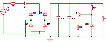 3、電容降壓電路是一個電流源,只需改變基準電壓元件,就可得到很寬范圍內(nèi)的任一DC電壓源;