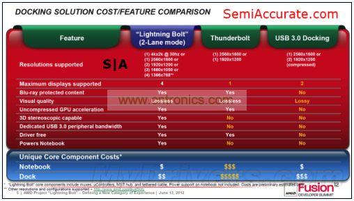 AMD的Lightning Bolt技術(shù)與Intel雷電接口比的不是更高的帶寬,而是針對(duì)后者在多設(shè)備連接及充電上的不足上有備而來。