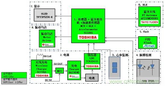圖示9-大聯大世平基于Toshiba TZ1001 高集成度智能手表功能框圖