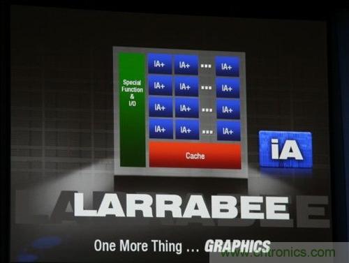 在2007年的IDF上,Intel正式揭開獨立顯卡——代號“Larrabee”的神秘面紗,Larrabee隸屬于其萬億次運算項目(Tera-scale),也將是Intel的第一款實用級萬億次運算處理器,其處理能力“大大超過”一萬億次浮點每秒;根據Intel首席架構師EdDavis的演示文稿,Larrabee基于可編程架構,主要面向高端通用目的計算平臺,至少有16個核心,主頻1.7-2.5GHz,功耗則在150W以上,支持JPEG紋理、物理加速、反鋸齒、增強AI、光線追蹤等特性。
