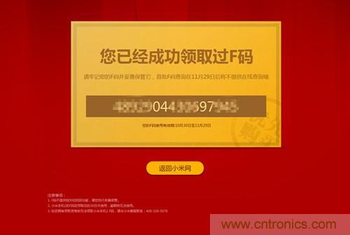 小米F碼領取成功界面