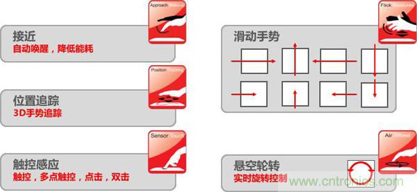 圖3:GestIC技術(shù)可識別的3D手勢和動作