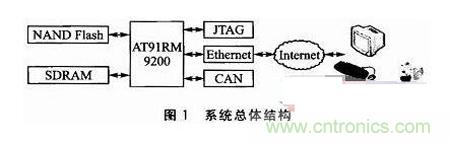 支持遠(yuǎn)程自動(dòng)更新的嵌入式Linux系統(tǒng)機(jī)構(gòu),它可以分為嵌入式終端和遠(yuǎn)程管理系統(tǒng)兩部分。系統(tǒng)的總體結(jié)構(gòu)如圖1所示,嵌入式終端采用基于ARM9架構(gòu)的AT91RM9200微處理器,采用擴(kuò)展的32MB SDRAM,由2片16位數(shù)據(jù)寬度的SDRAM芯片HY57V281620并連而成,采用64MB NANDFla sh存儲芯片K9F1208,運(yùn)行嵌入式Linux系統(tǒng)。遠(yuǎn)程管理系統(tǒng)選用PC機(jī)。嵌入式終端通過以太網(wǎng)連接到遠(yuǎn)程管理系統(tǒng),管理人員可以通過telne t即可對各個(gè)嵌入式終端進(jìn)行監(jiān)控、管理和遠(yuǎn)程更新。
