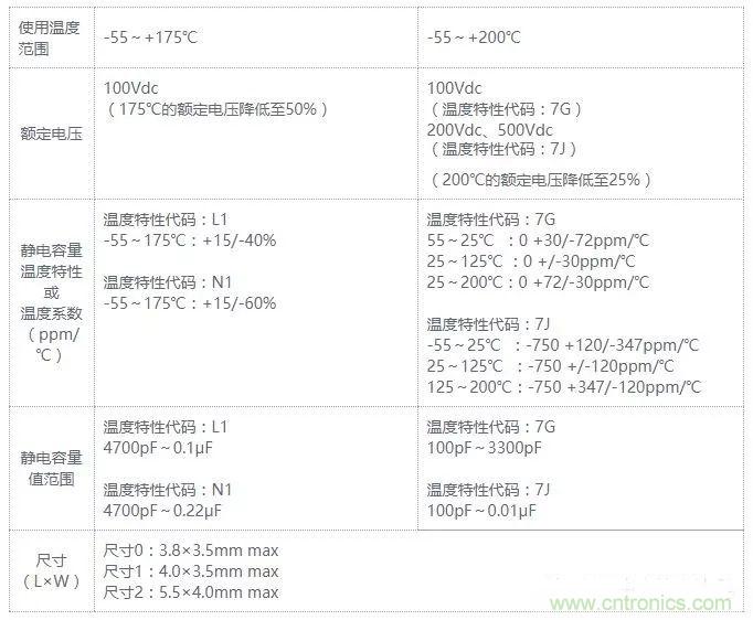 以改善汽車燃費為目的,動力傳動控制系統(tǒng)通過DC發(fā)動機驅(qū)動增加控制。為了抑制該DC電機發(fā)生的電氣噪聲使用電容器。汽車的控制設(shè)備在過于嚴(yán)酷的溫度環(huán)境下使用,有可能會出現(xiàn)短時間接近200℃的高溫。用于此種環(huán)境下的電容器要求具有高耐熱性。該系列使用新研發(fā)的高耐熱樹脂來涂層高耐熱多層陶瓷電容器,實現(xiàn)最高使用溫度200℃。截止到目前為止額定電壓200Vdc、500Vdc時,容量值最大0.01μF,此次新增了支持175℃、200℃的100Vdc產(chǎn)品,實現(xiàn)了小型化和容量值擴大至0.1μF。今后,將致力于面向安裝在引擎艙等高溫環(huán)境內(nèi)的設(shè)備擴銷。