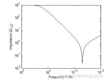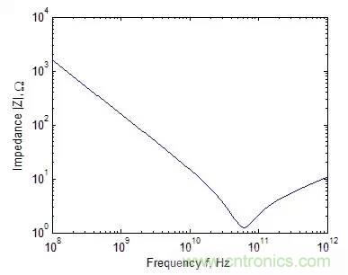 一個典型的1pF電容阻抗絕對值與頻率的關系