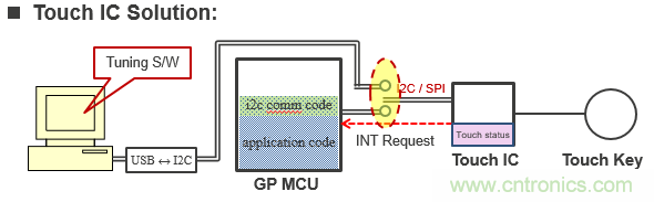 圖1 使用觸控IC和MCU應用方案中軟、硬件組成圖