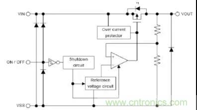 LDO的工作原理是通過反饋調整MOSFET的Vsd壓降以使輸出電壓不變。輸出電壓紋波小,電流也較小,用于RF模塊或音頻模塊等對電壓要求高的電路。特點是成本低噪音小。缺點是效率低,輸出電流小,只能用在降壓的場合。必須要注意,為了達到穩定的回路就必須使用負反饋。