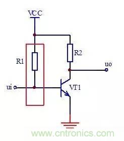 當(dāng)電流流過電阻時,就在電阻兩端產(chǎn)生電壓,如圖集電極負(fù)載電阻R2就是起到這個作用的,將流過電阻R2的電流轉(zhuǎn)換成電壓從UO輸出,這種電阻在電路中一般稱為集電極負(fù)載電阻。