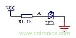 在電源與電路的A之間接入電阻時,A點的電壓就比電源電壓低,可以為發(fā)光二極管提供合適的電壓。電阻R1同時限制該條支路的電流,保護發(fā)光二極管不會因為電流太大而燒壞,這種電阻在電路中一般稱為降壓電阻或者是限流電阻。