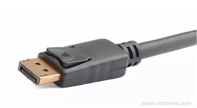 上面介紹的HDMI是AV家電企業主導開發的接口,PC企業需要支付昂貴的技術使用費。2006年5月,VESA(Video Electronics Standards Association,視頻電子標準協會)制定了主要用于電腦顯示器的“DisplayPort(簡稱DP)”數字接口標準。DP以數字模式傳輸視頻和音頻信號,在這一點上與HDMI相似。DP的優點是作為PC顯示器專用接口,多顯示器輸出功能優秀,無需額外支付技術使用費。從形狀來看,HDMI和DP的尺寸相差無幾,兩者在插拔方式上的區別在于,DP線拔插過程中需按下固定鉤按鈕才能拔出來,以避免掉線。