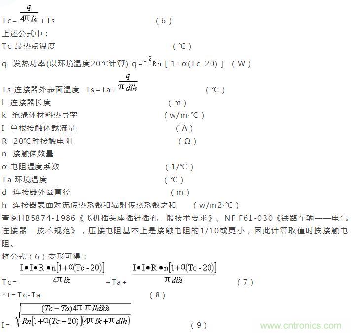 依據(jù)熱力學(xué)熱傳導(dǎo)、熱對流、熱輻射理論,整理出電連接器最熱點溫度計算公式: