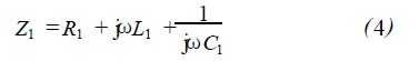 圖4中,閱讀器的發送器出口產生高頻電壓u2,接收器直接與天線線圈L1連接。串聯諧振電路的總阻抗Z1為各項單阻抗之和,即: