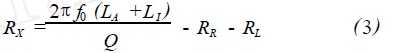式中,RR為輻射電阻;RL為環型導體損耗電阻;RX為額外歐姆損耗電阻;LA為環型天線電感;L1為環型導體電感。