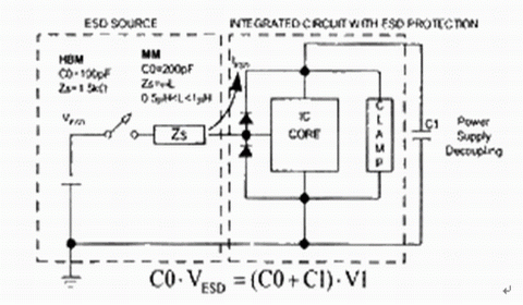 ESD電平用電壓描述,這個電壓源干與IC相連的電容上的儲存電荷。一般不會考慮有上千伏的電壓作用于IC。為了評估傳遞給IC的能量,需要一個模擬放電模型的測試裝置。