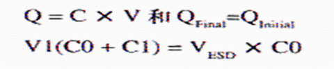 V1=VESD×C0/(C0+C1)或20V=2kV×100pF/(100pF+0.01μF)